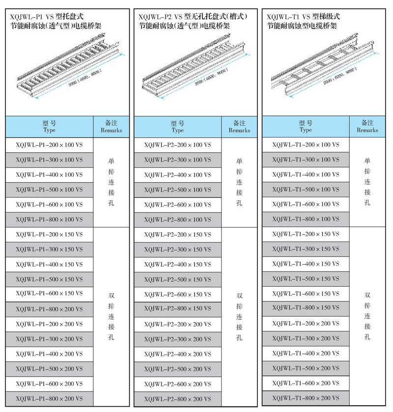 本文介紹XQJWL-P1 VS 型 托盤式節(jié)能耐腐蝕(透氣型)電纜橋架、XQJWL-P2 VS 型 五孔托盤式節(jié)能耐腐蝕(透氣型)電纜橋架、XQJWL-T1 VS 型 階梯節(jié)能耐腐蝕(透氣型)電纜橋架的各種型號(hào)詳細(xì)參數(shù)。