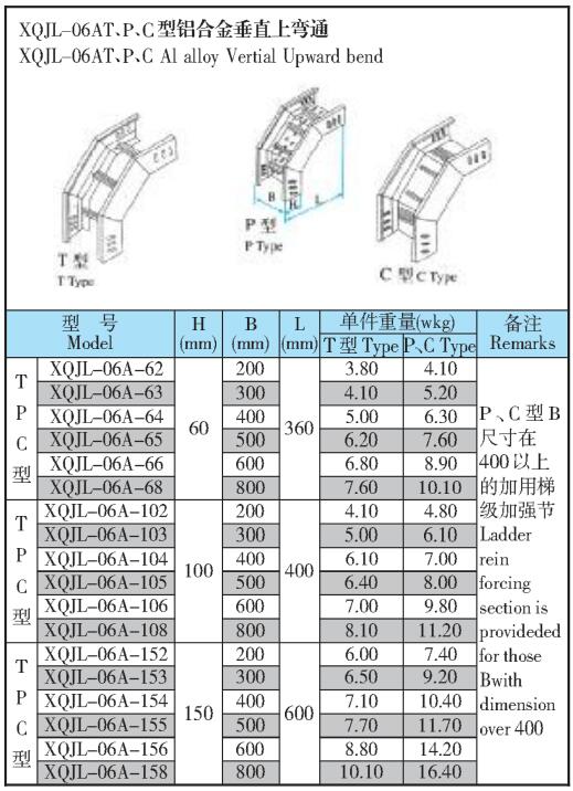 XQJL-06AT、P、C型鋁合金垂直上彎通生產(chǎn)廠家