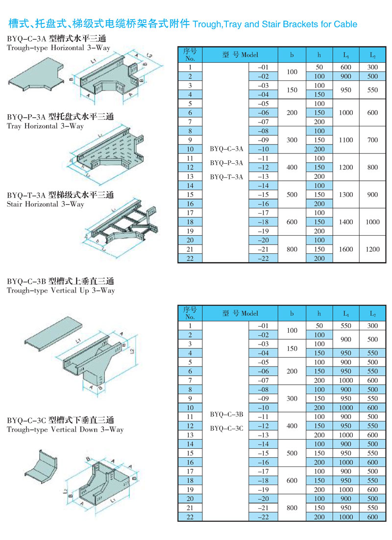 槽式、托盤式、階梯式電纜橋架各式附件