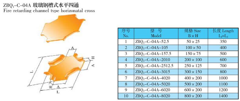 ZBQ1-C-04A玻璃鋼槽式水平四通